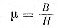 Магнитную индукцию можно представить произведением двух сомножителей, один из которых μ — магнитная проницаемость, зависит от физических свойств тела, а второй H — напряженность магнитного поля от величины и расположения электрических токов, создающих это поле, B = μ * H.